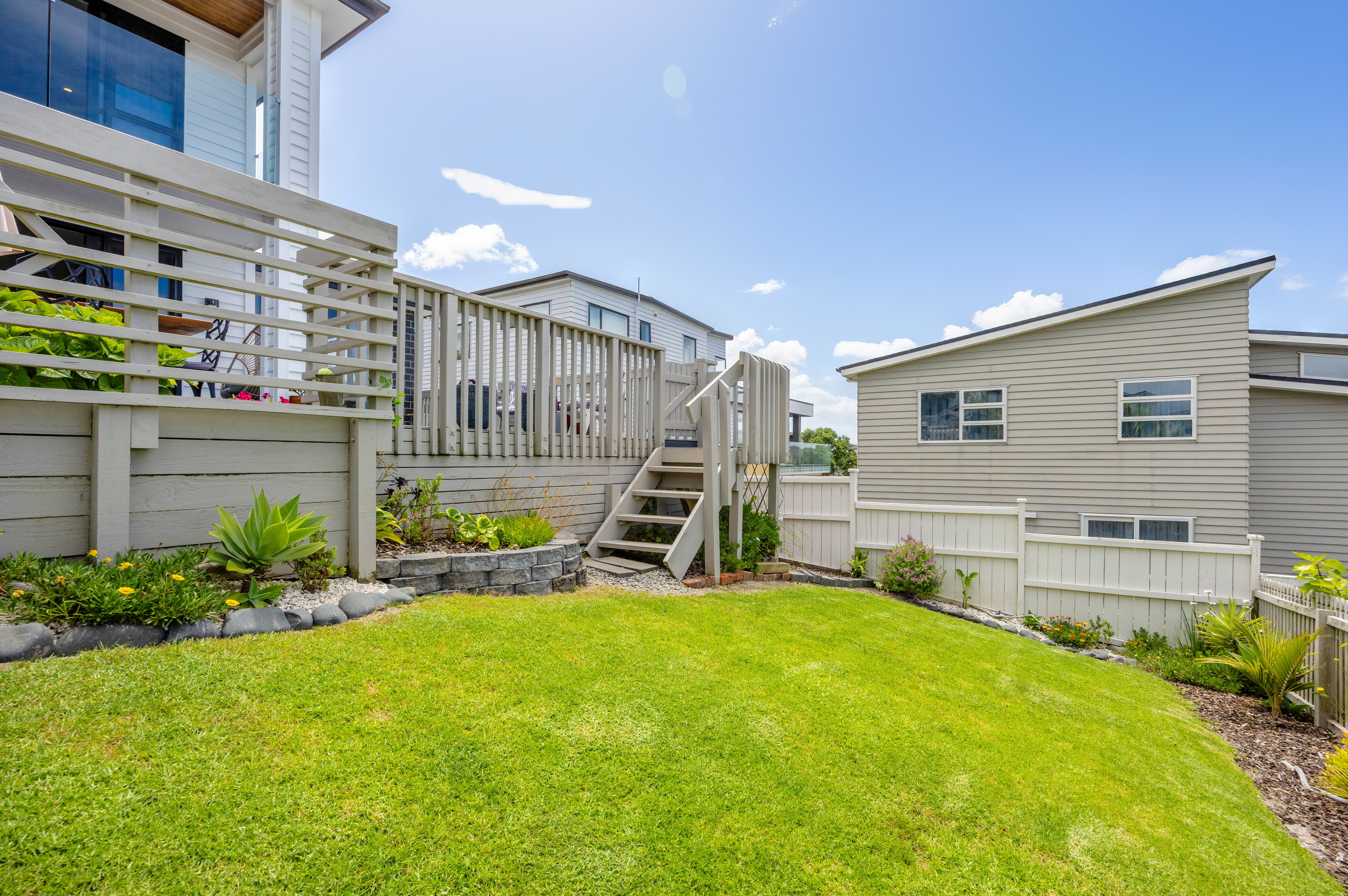 Located in a quiet lane of executive homes, and a short walk to the new Long Bay Village; you can stroll down to the local cafes, restaurants, shops, and supermarket. Or take a walk along one of the many coastal walkways which allow easy access to Long Bay Regional Park and the beach.