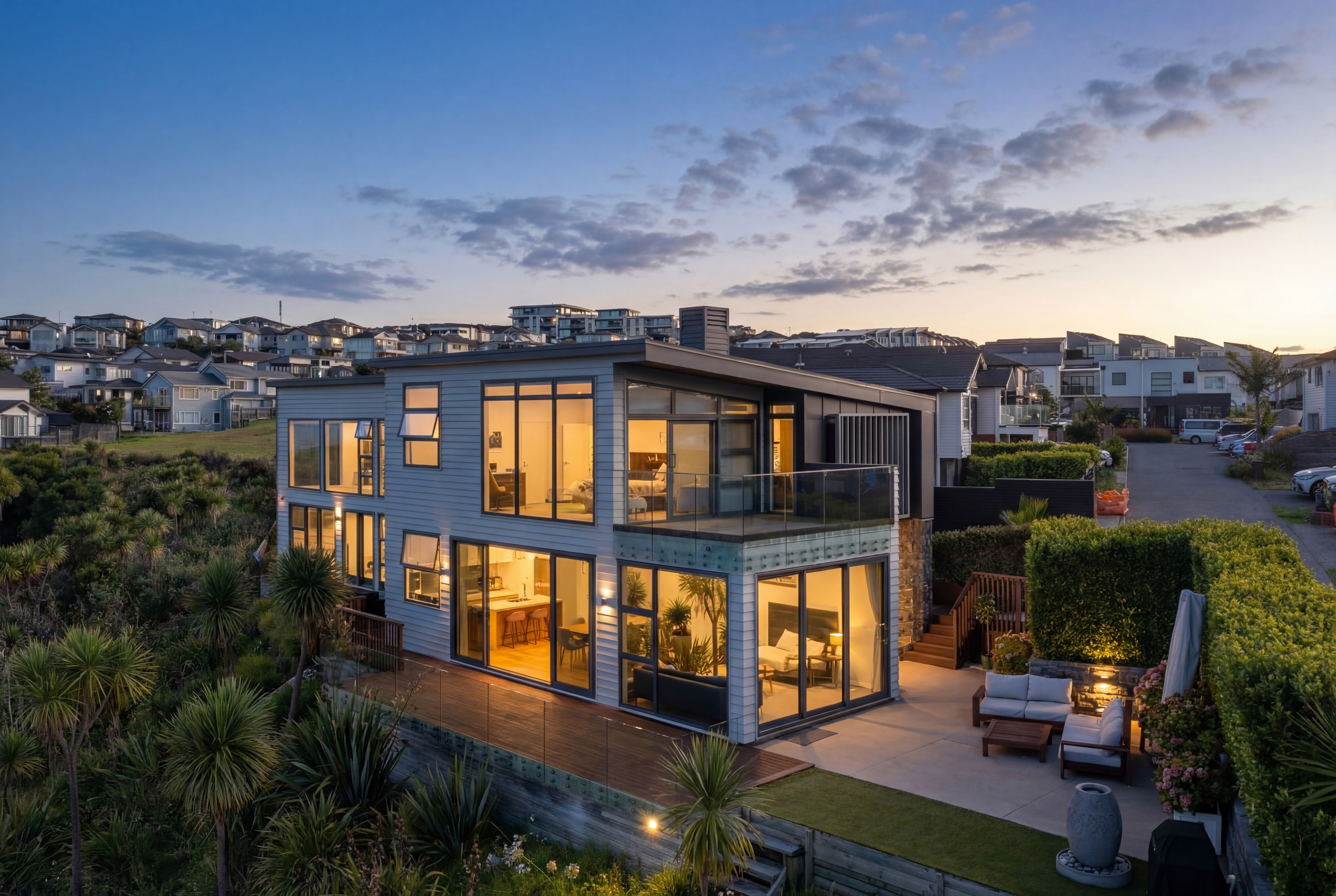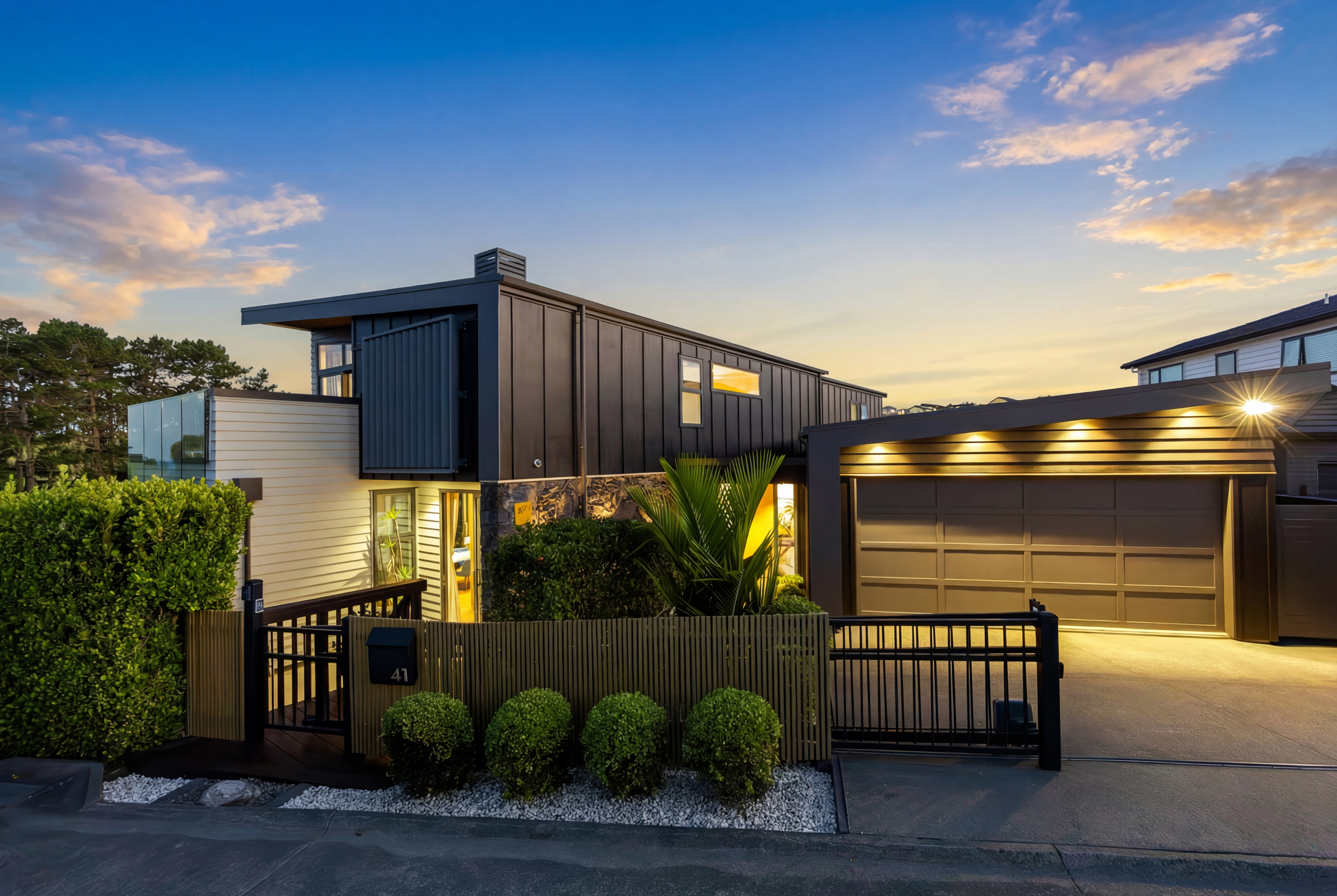 Privately positioned at the end of the enclave, this statement residence designed by Rhondda Turner commands breathtaking, uninterrupted views across Long Bay Regional Park, unfolding all the way to the ocean, where luxury, privacy, and nature converge.