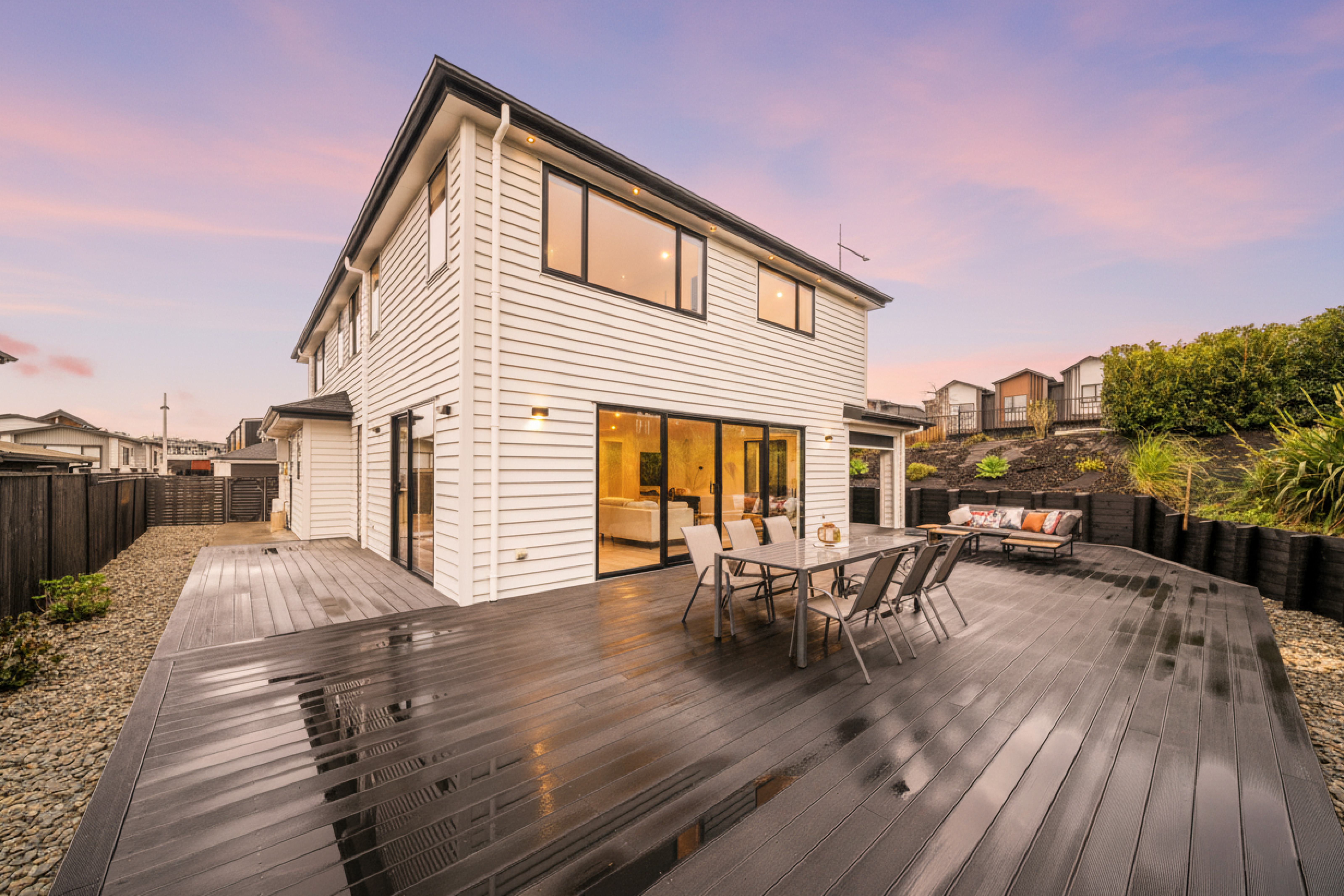 Experience refined family living in this impeccably designed residence, perfectly positioned on a private corner site in sought-after Long Bay. Combining architectural elegance with everyday comfort, this home delivers the ideal balance of sophistication, functionality, and space for modern family living.