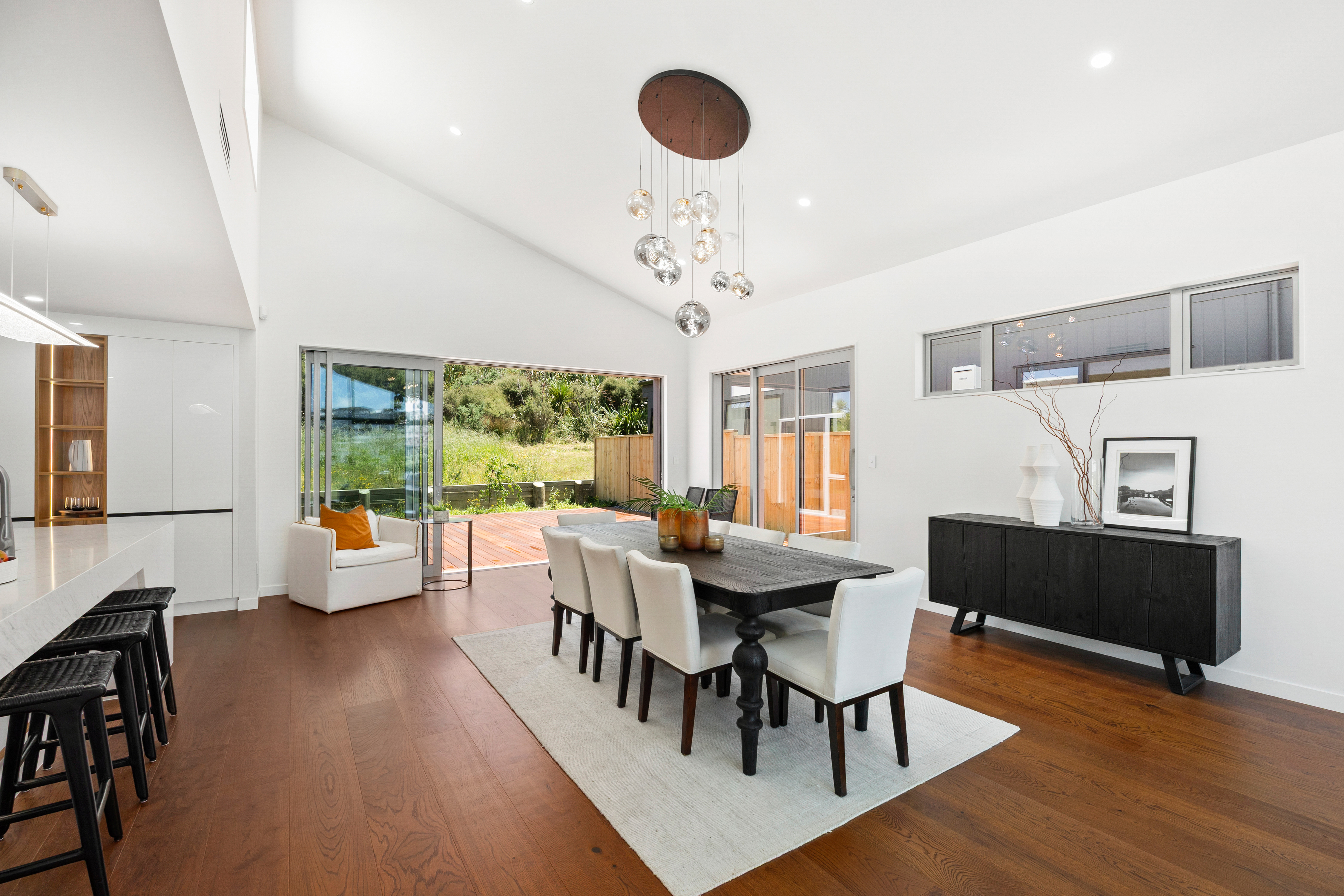 - Easy single-level living - Light-filled interiors with high ceilings - Modern kitchen with quality finishes - Dining flows to a large entertaining deck - Generous deck ideal for indoor-outdoor living - Fully tiled, designer bathrooms - Bath in one bathroom - Quality fittings throughout - Private and peaceful setting - Prime Long Bay location - Close to shops, beach, walks, and hikes - Zoned for Long Bay College & Long Bay Primary