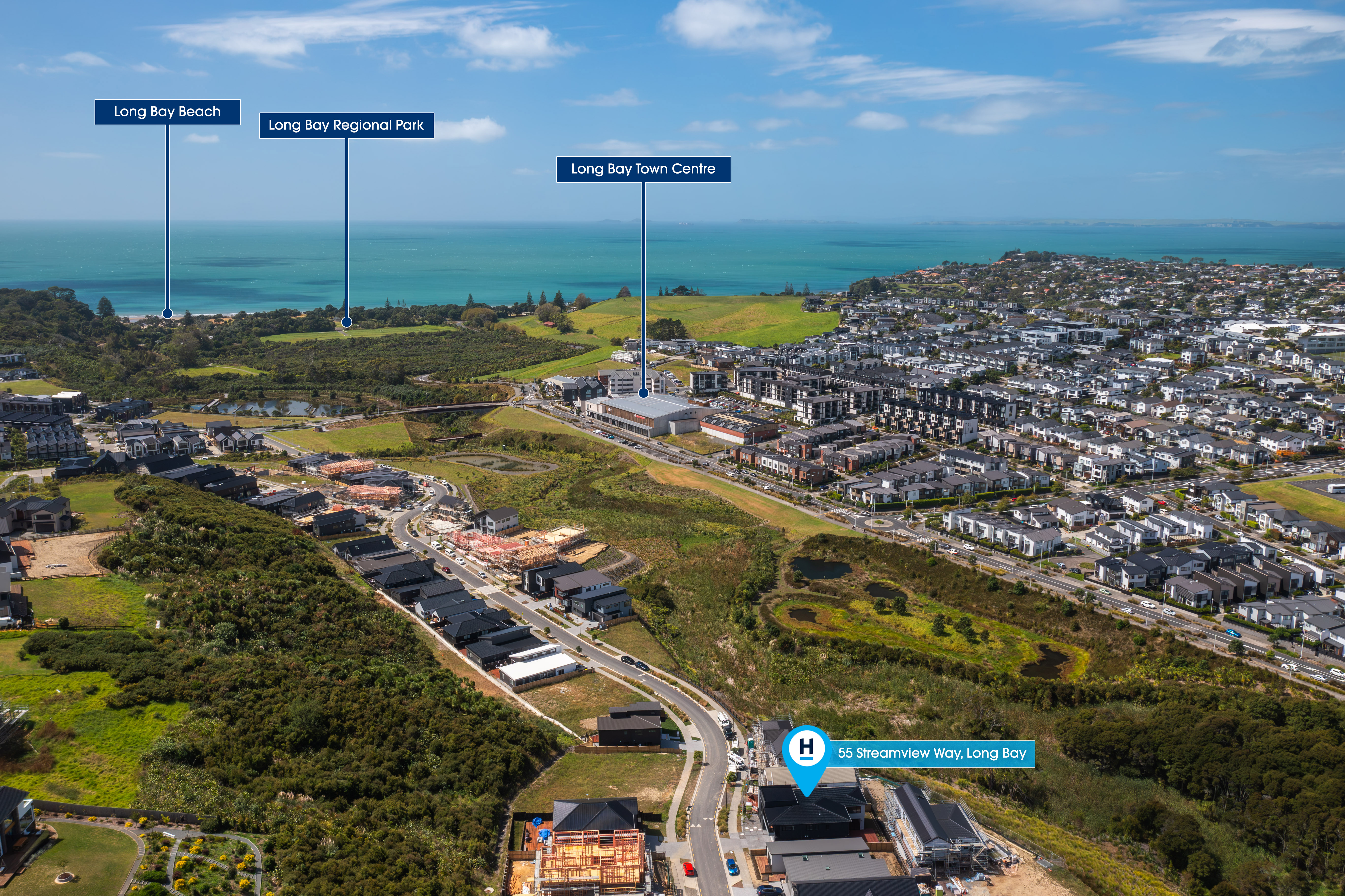 Features include: - Fully tiled bathrooms - Master bedroom with expansive walk-in wardrobe & feature lighting - Marble sinks, bath and electric toilets - Double internal access garage - Open plan living - Stylish kitchen with double oven & feature lighting - Butler's pantry complete with additional oven and gas hob - Family lounge with cosy fireplace - Gorgeous chandelier creating a striking design feature - Balcony with peaceful bush views - Expansive deck area showcasing views of Long Bay, bush, and ocean - Upstairs bar area with a third lounge - Generous bedrooms - Home backing onto a lovely reserve