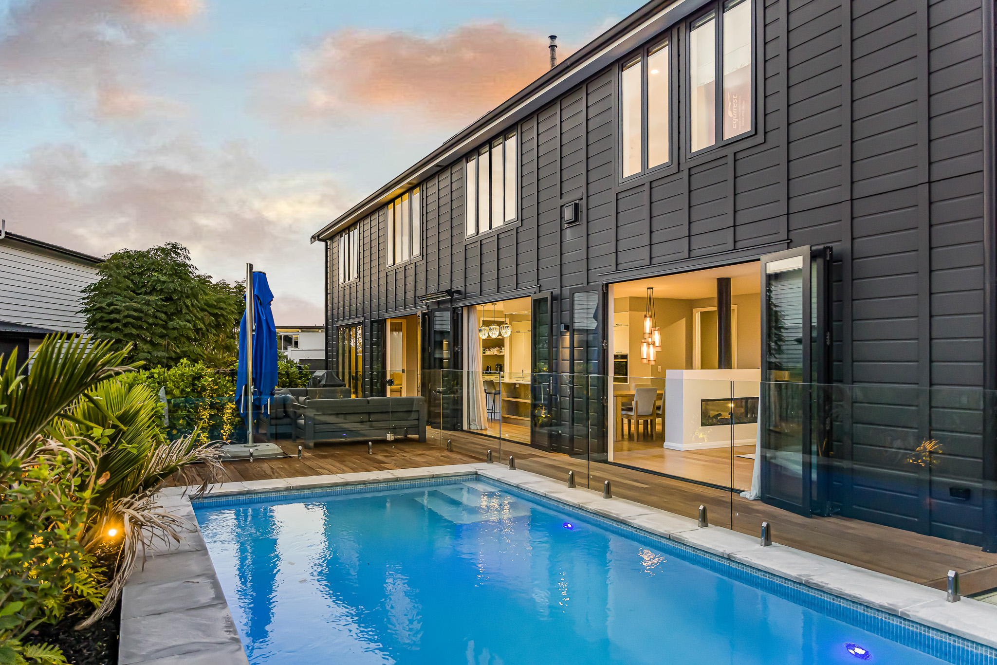 Perfectly positioned on one of the North Shore's most sought-after coastal streets, this exceptional contemporary residence offers a seamless transition from your open-plan living area to a sun-drenched, heated, saltwater pool.